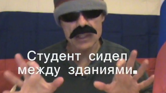 Студент сидел между зданиями.