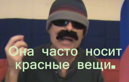 Она часто носит красные вещи.(She often wears red things.)