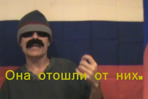 Она отошли от них.(She walked away from them.)