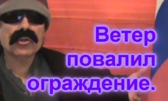 Ветер повалил ограждение. (The wind blew over the fence.)